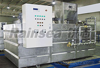 4、溶液槽:由三槽溢流式組成,每個槽中安裝一個電動攪拌機,將需投加的溶質(zhì)與水按一定比例配制后得到充分混合。