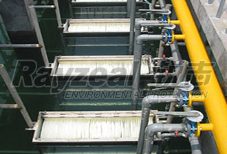 MBR膜生物反應(yīng)器(membrane bioreactor),是一種將高效膜分離技術(shù)與傳統(tǒng)活性污泥法相結(jié)合的新型高效污水處理工藝,它用具有獨特結(jié)構(gòu)的MBR平片膜組件置于曝氣池中,經(jīng)過好氧曝氣和生物處理后的水,由泵通過濾膜過濾后抽出。MBR污水處理與傳統(tǒng)污水處理方法具有很大區(qū)別,通過膜分離裝置代替?zhèn)鹘y(tǒng)工藝中的二沉池和三級處理工藝。從而得到優(yōu)質(zhì)的出水,解決了傳統(tǒng)污水處理方法的出水水質(zhì)達不到中水回用要求的問題。MBR膜對城市生活廢水處理后的水可直接作為市政用水或進一步處理作各種工業(yè)用水。