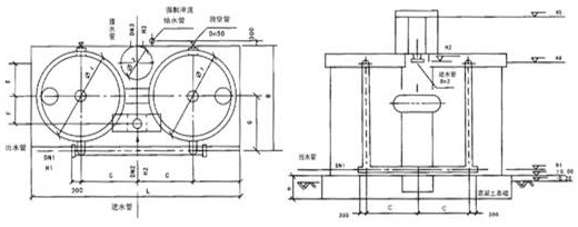 5、表中排水管在±0.00以上接出,根據(jù)用戶要求還可以改為±0.00以下接出:即DLB-100、120、150、200四種規(guī)格的排水管標高可改為-0.45m。省去兩個彎頭,直接接入檢查井,用戶在訂貨時應在合同中注明要求。